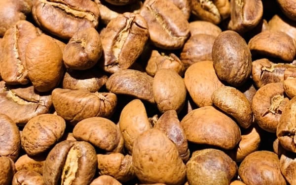 (6-8 min 380º) Within each bean, pressure is built through increased temperatures. The beans become EXOTHERMIC, producing their own RADIANT HEAT. As they swell, steam and carbon dioxide are released creating the audible FIRST CRACK. A thin membrane of CHAFF adhered to the fold of each bean is released. As sugars caramelize, lingering greenish aromas dissipate and more familiar coffee-like aromas are noticeable.